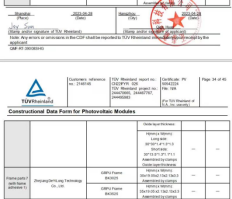 近日浙江德毅隆配合横店集团东磁股份有限公司以及正泰新能科技有限公司取得了第三方TUV组件认证证书,其中横店东磁单双玻分别为TUV南德和TUV北德颁发的组件认证,正泰新能则是TUV莱茵颁发的组件认证。