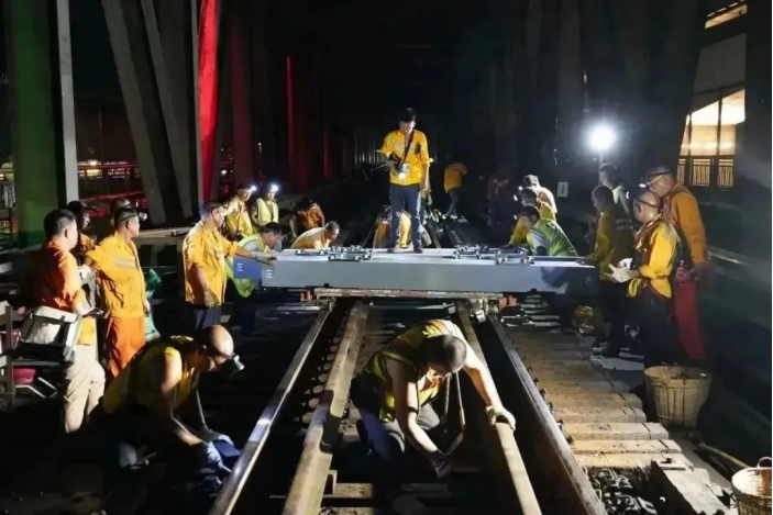 7月13日21时50分肇庆工务段肇庆桥隧车间的职工正利用夜间天窗点间在25米高空上的西江特大桥上进行更换桥枕施工。西江特大桥地处广东省肇庆市,于1987年4月1日开始运营,为公路、铁路两用特大桥梁,分上下层。上层走汽车,下层跑火车,铁路桥全长1621.858米,是连接岭南地区的重要铁路桥梁。