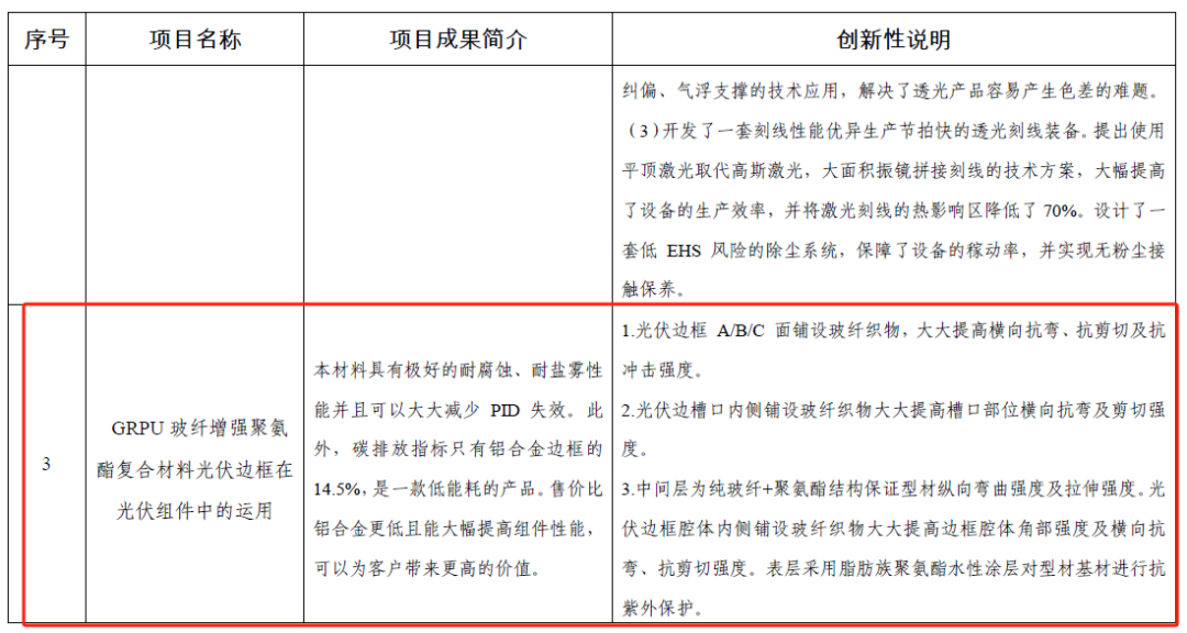 德毅隆的GRPU玻纤增强聚氨酯复合材料光伏边框设计在本次创新成果评选中脱颖而出,获得了行业专家和评委的高度认可。这一荣誉不仅是对德毅隆研发团队的努力和创新的肯定,也是对公司在光伏边框领域的技术实力和市场影响力的认可。